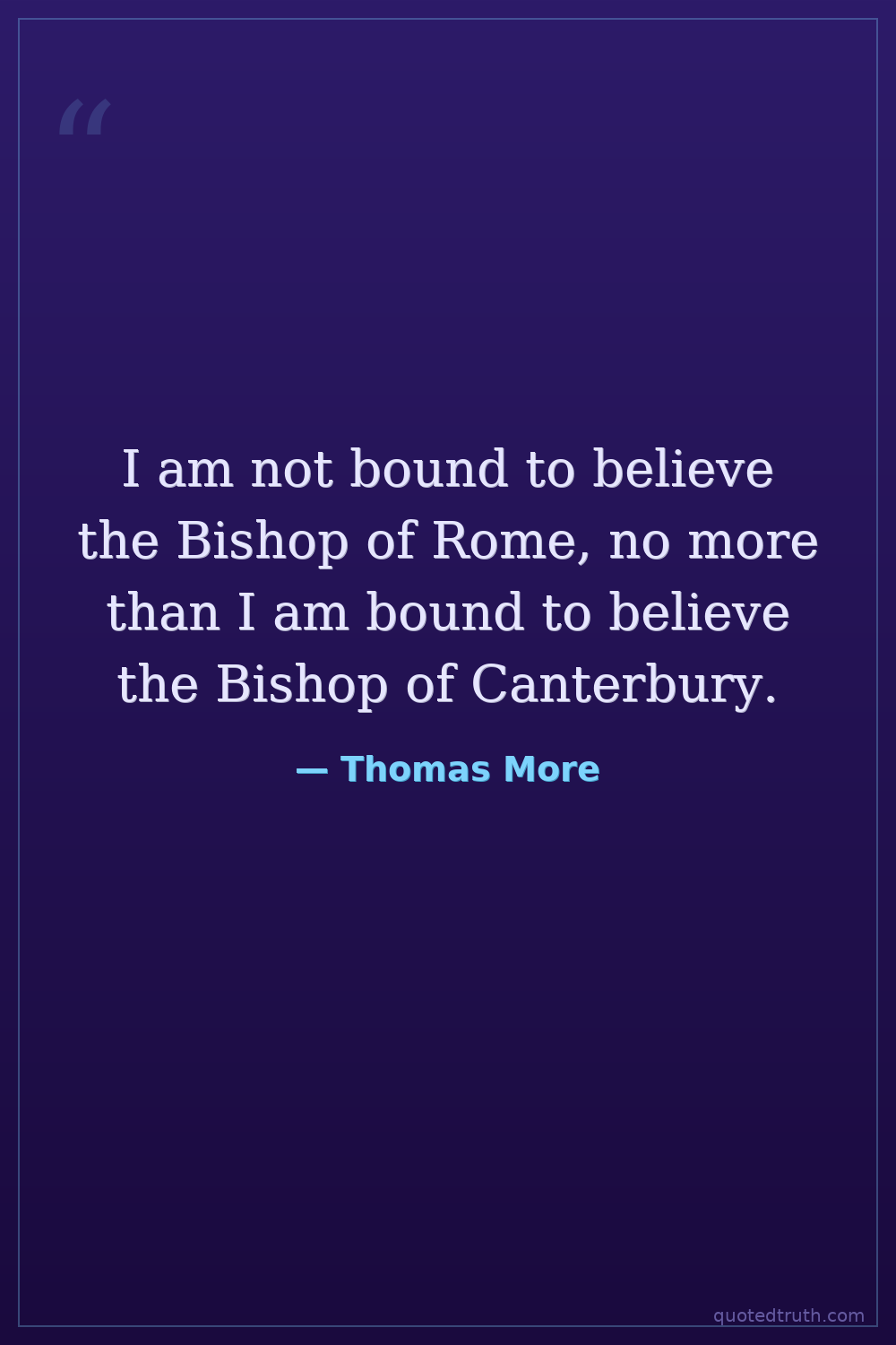I am not bound to believe the Bishop of Rome, no more than I am bound to believe the Bishop of Canterbury.