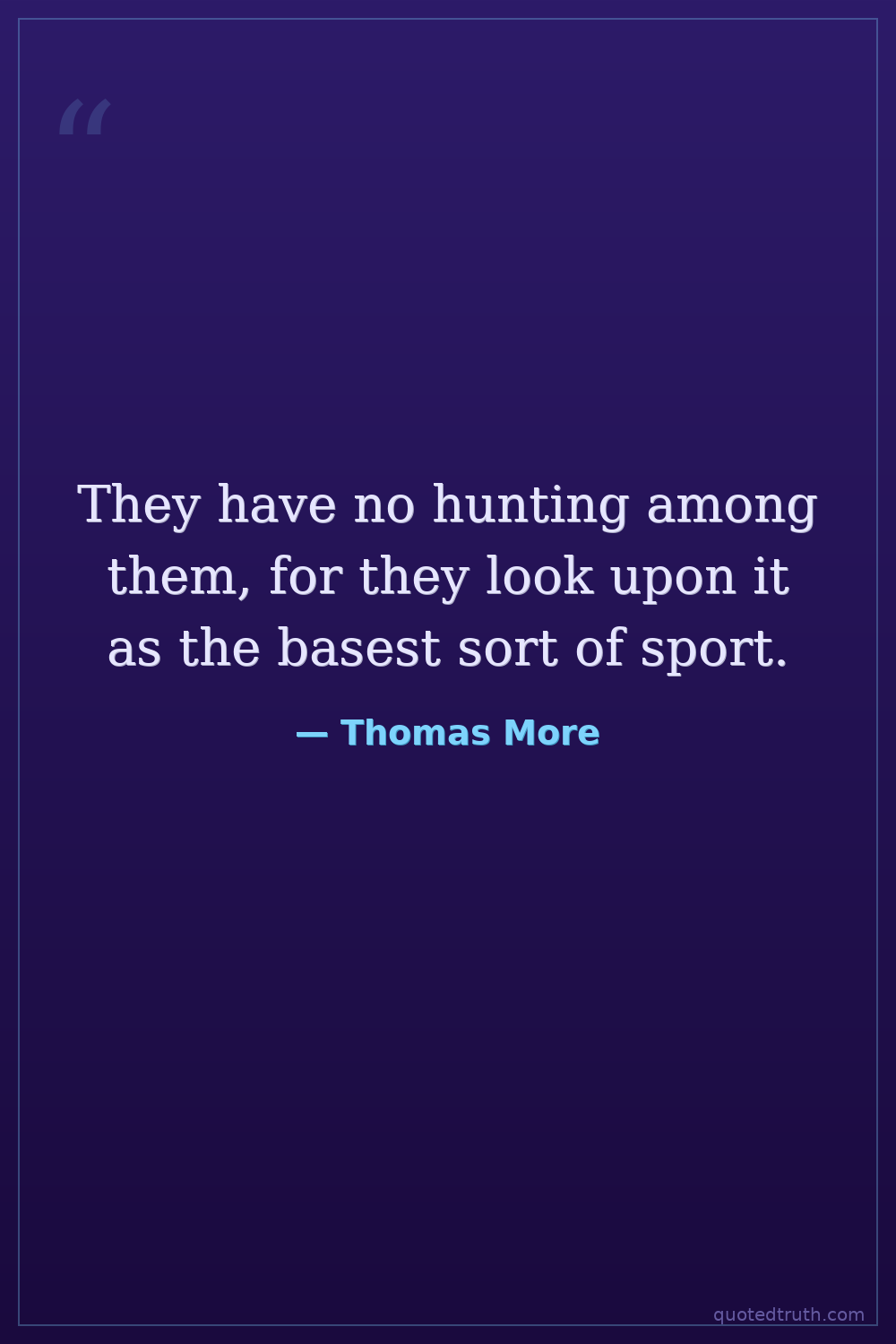 They have no hunting among them, for they look upon it as the basest sort of sport.