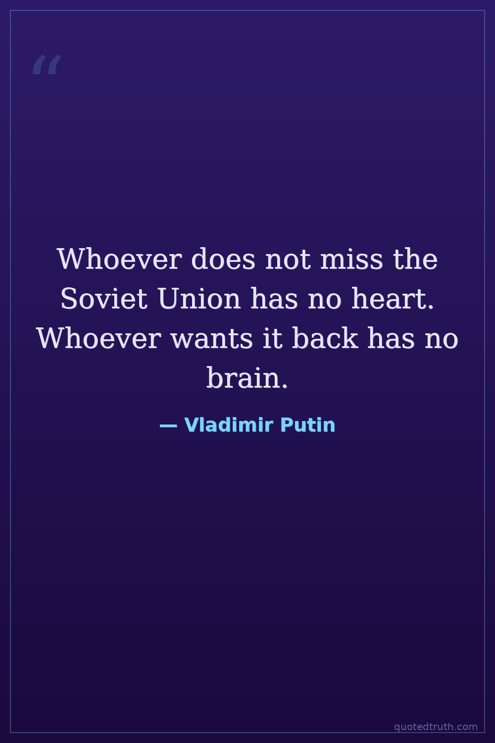 Whoever does not miss the Soviet Union has no heart. Whoever wants it back has no brain.