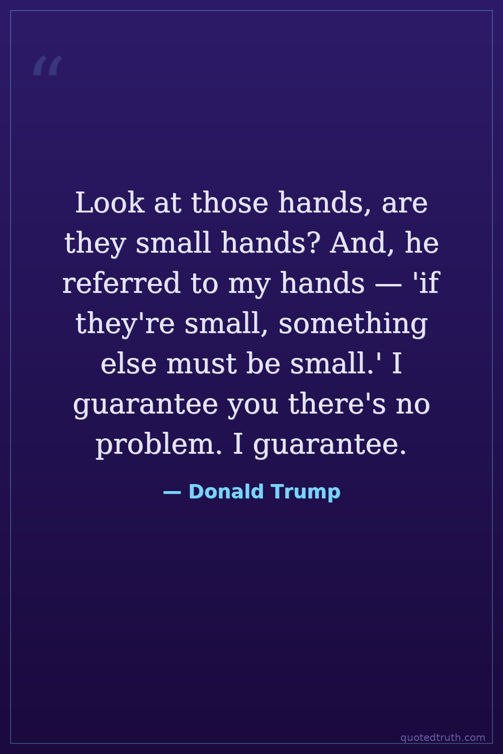 Look at those hands, are they small hands? And, he referred to my hands — 'if they're small, something else must be small.' I guarantee you there's no problem. I guarantee.