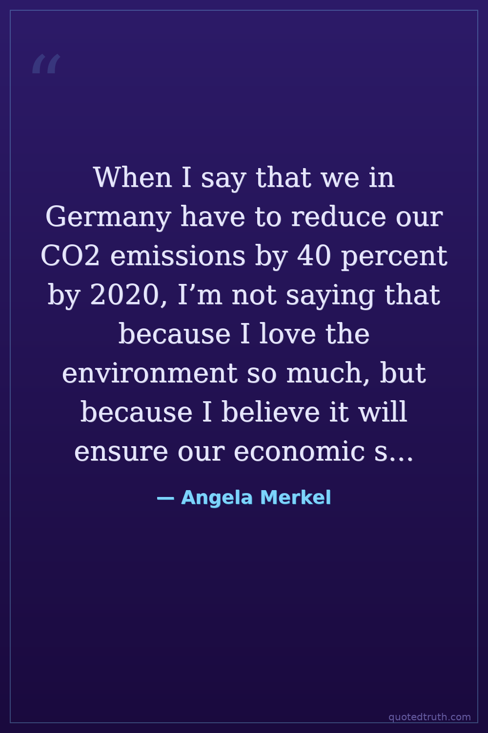 When I say that we in Germany have to reduce our CO2 emissions by 40 percent by 2020, I’m not saying that because I love the environment so much, but because I believe it will ensure our economic survival.