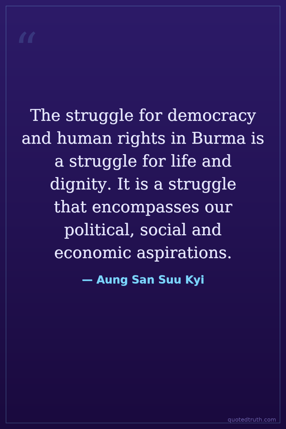 The struggle for democracy and human rights in Burma is a struggle for life and dignity. It is a struggle that encompasses our political, social and economic aspirations.