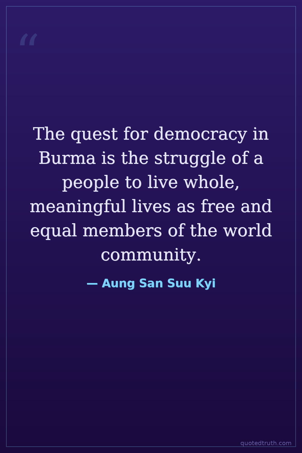 The quest for democracy in Burma is the struggle of a people to live whole, meaningful lives as free and equal members of the world community.