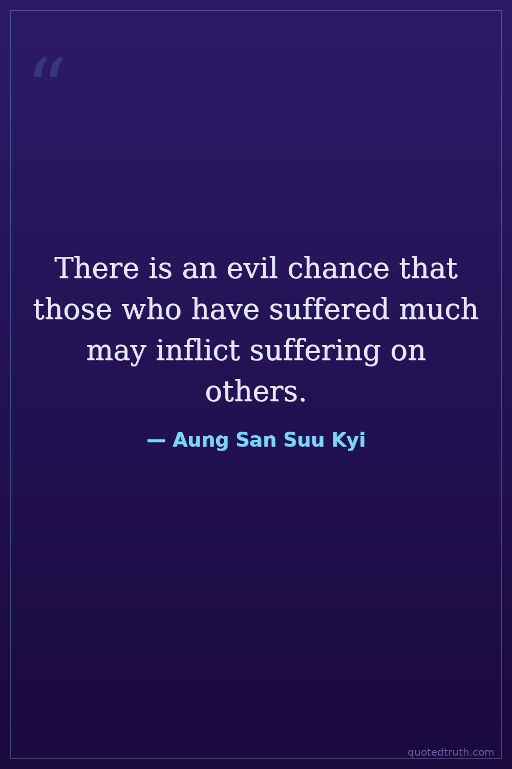 There is an evil chance that those who have suffered much may inflict suffering on others.
