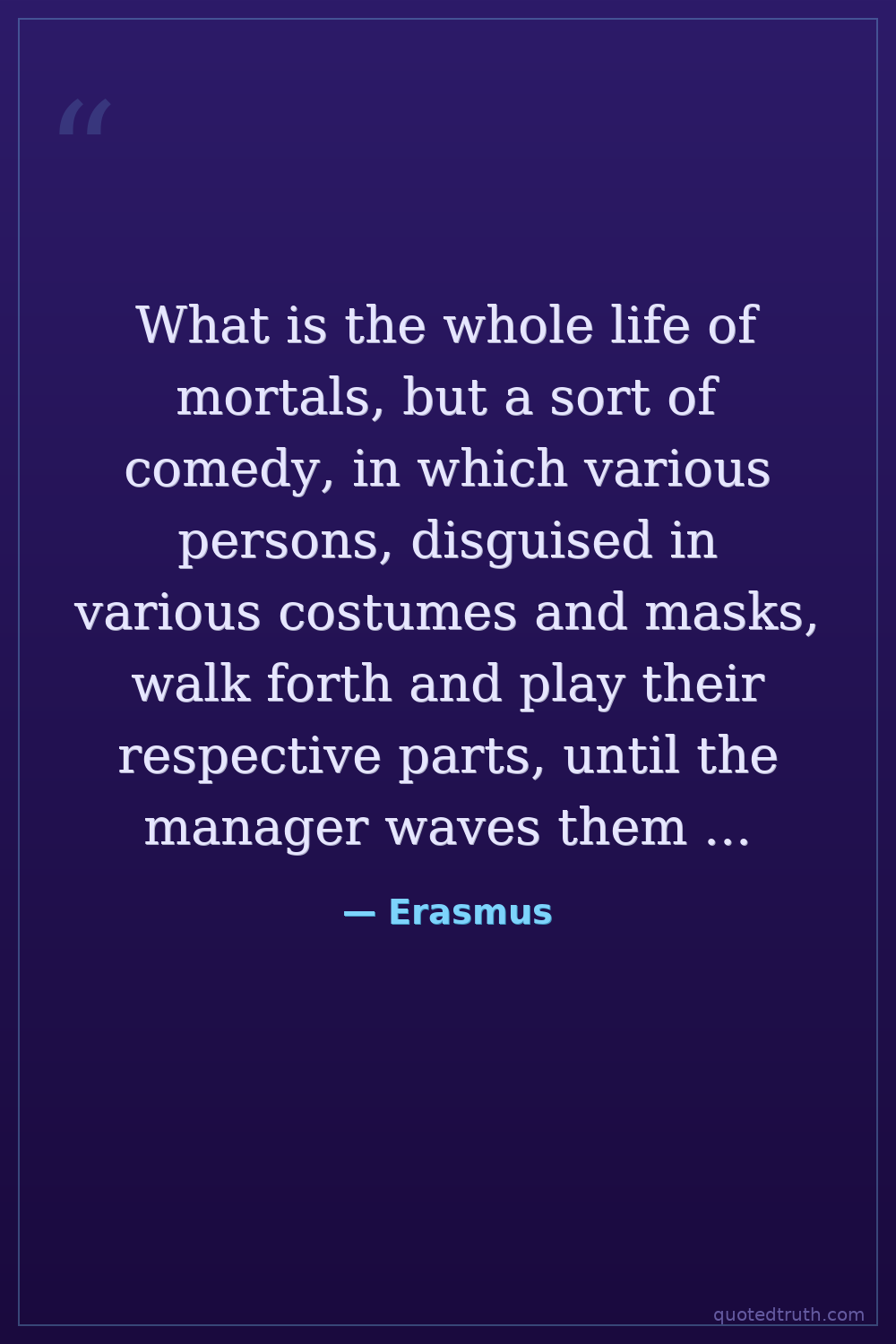 What is the whole life of mortals, but a sort of comedy, in which various persons, disguised in various costumes and masks, walk forth and play their respective parts, until the manager waves them off the stage?