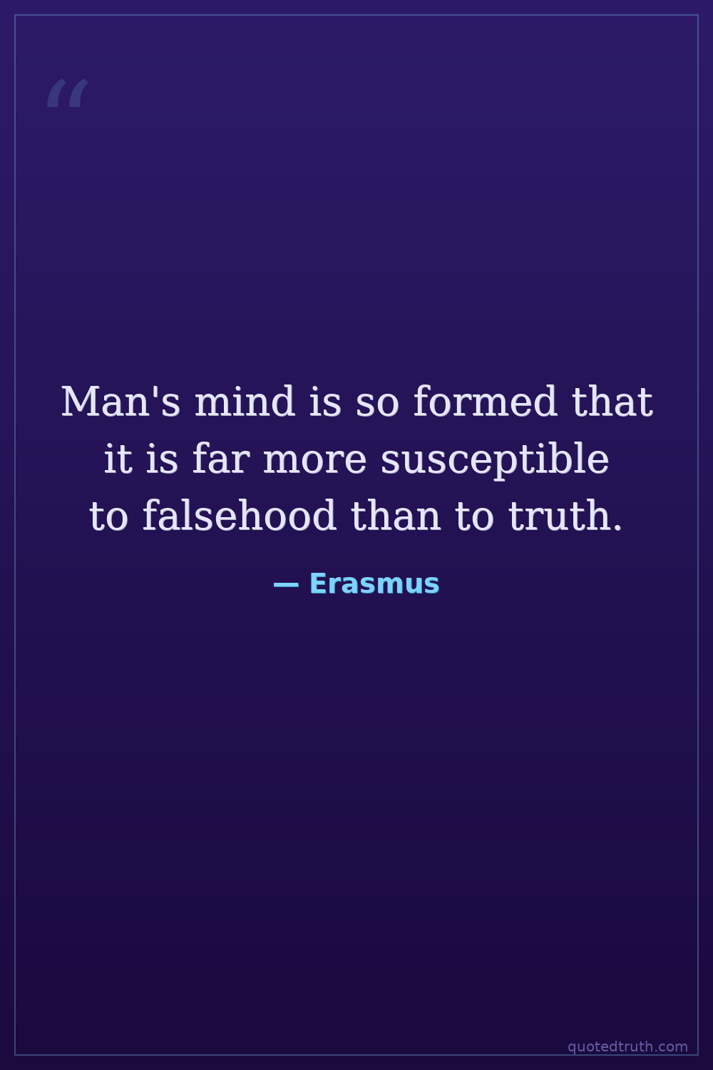 Man's mind is so formed that it is far more susceptible to falsehood than to truth.