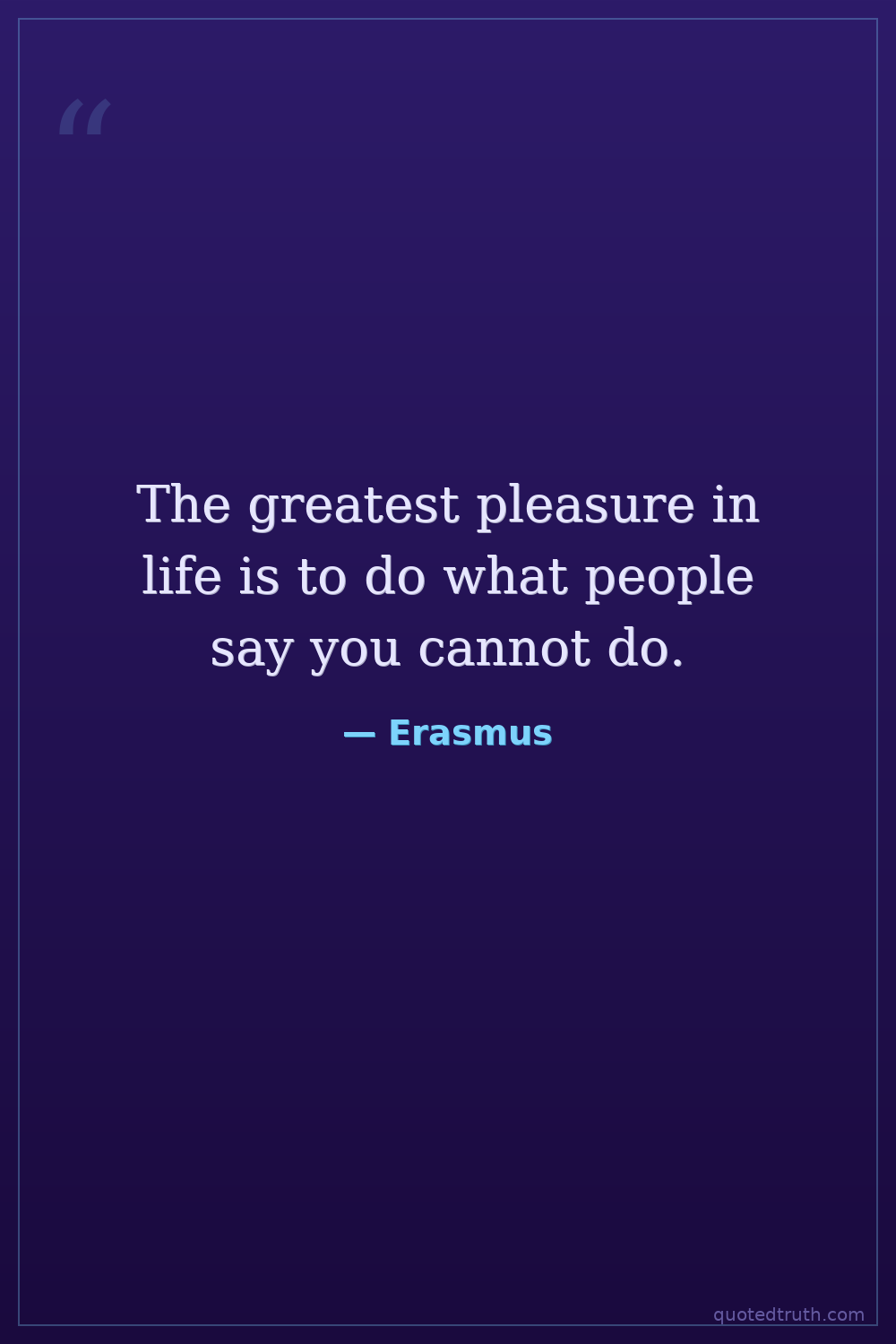 The greatest pleasure in life is to do what people say you cannot do.