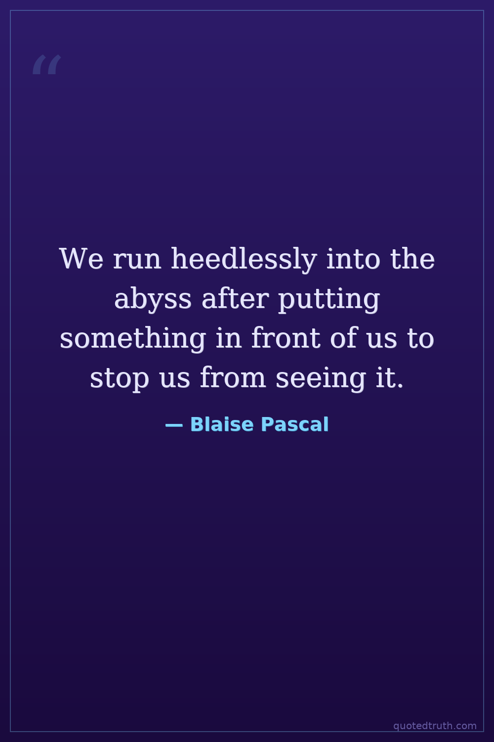We run heedlessly into the abyss after putting something in front of us to stop us from seeing it.