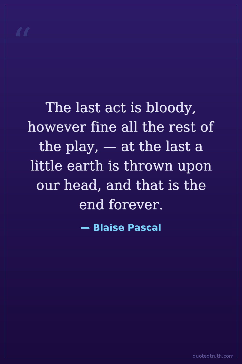 The last act is bloody, however fine all the rest of the play, — at the last a little earth is thrown upon our head, and that is the end forever.