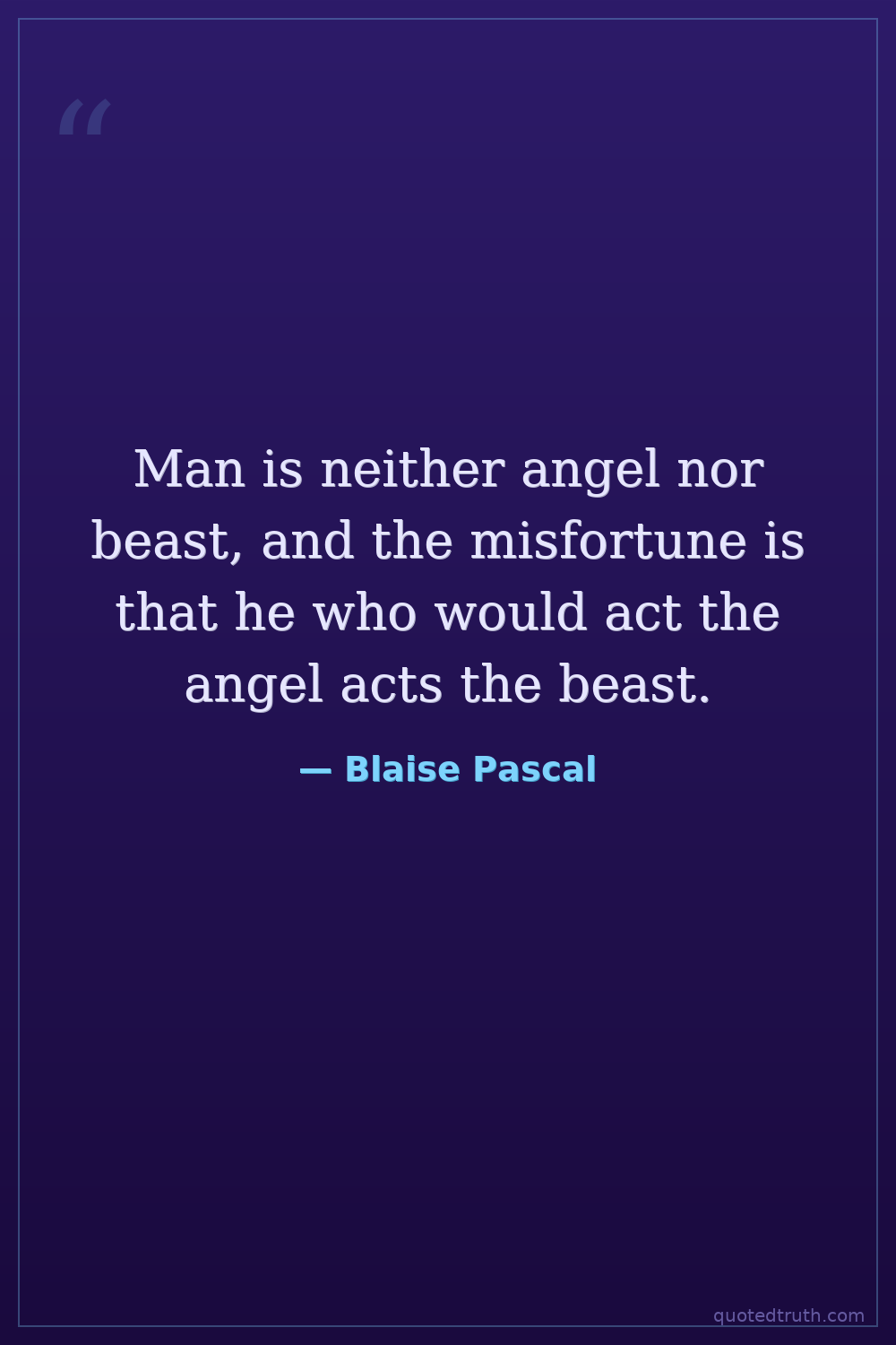 Man is neither angel nor beast, and the misfortune is that he who would act the angel acts the beast.