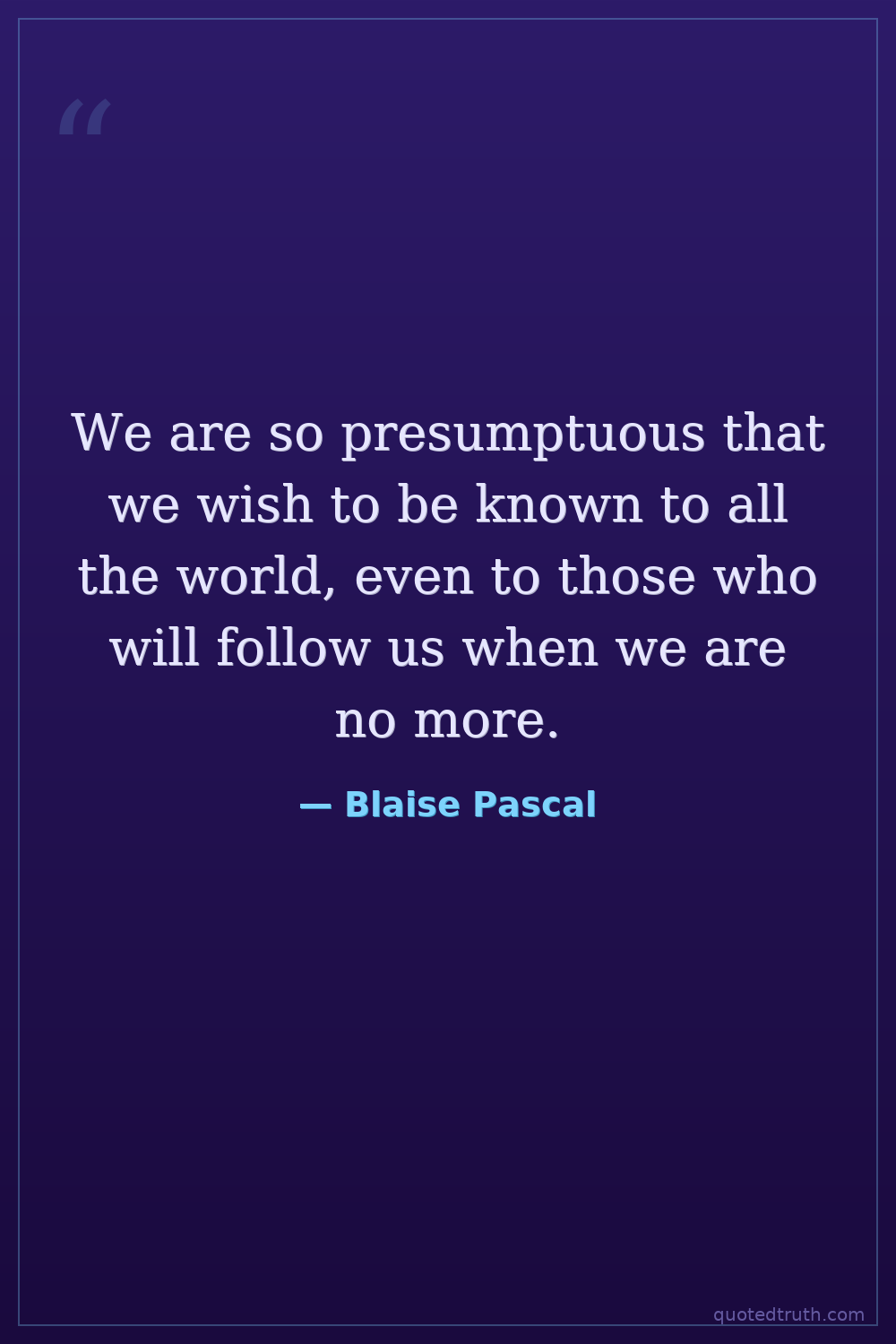 We are so presumptuous that we wish to be known to all the world, even to those who will follow us when we are no more.