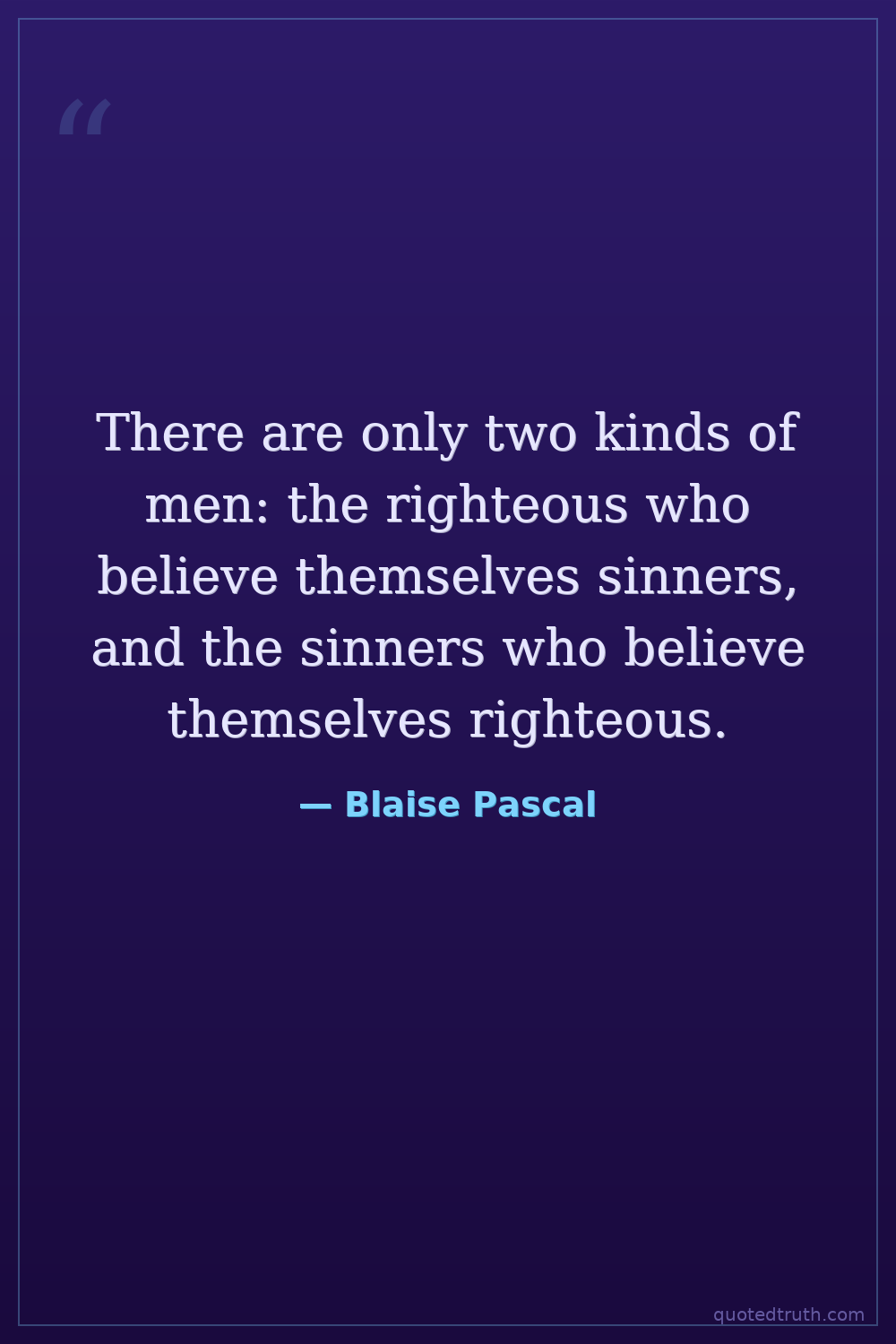 There are only two kinds of men: the righteous who believe themselves sinners, and the sinners who believe themselves righteous.