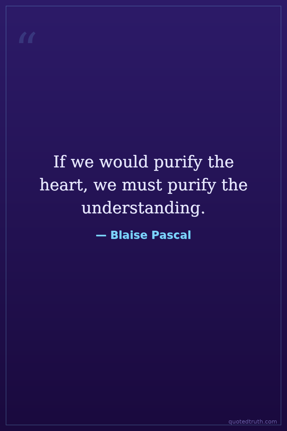 If we would purify the heart, we must purify the understanding.