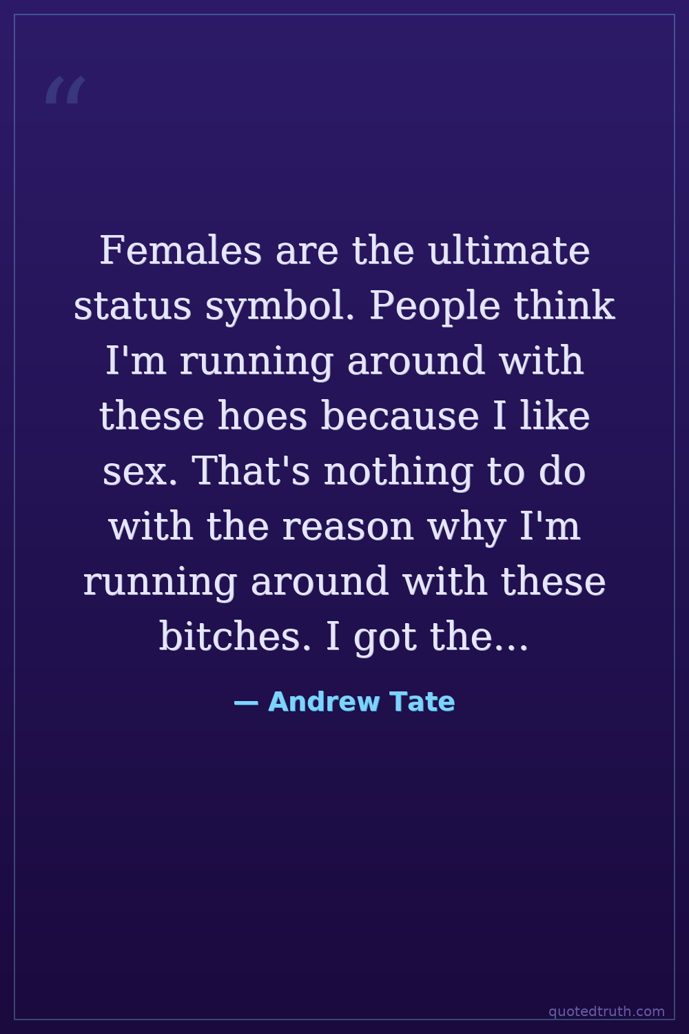Females are the ultimate status symbol. People think I'm running around with these hoes because I like sex. That's nothing to do with the reason why I'm running around with these bitches. I got these bitches just so everyone knows who the don is.