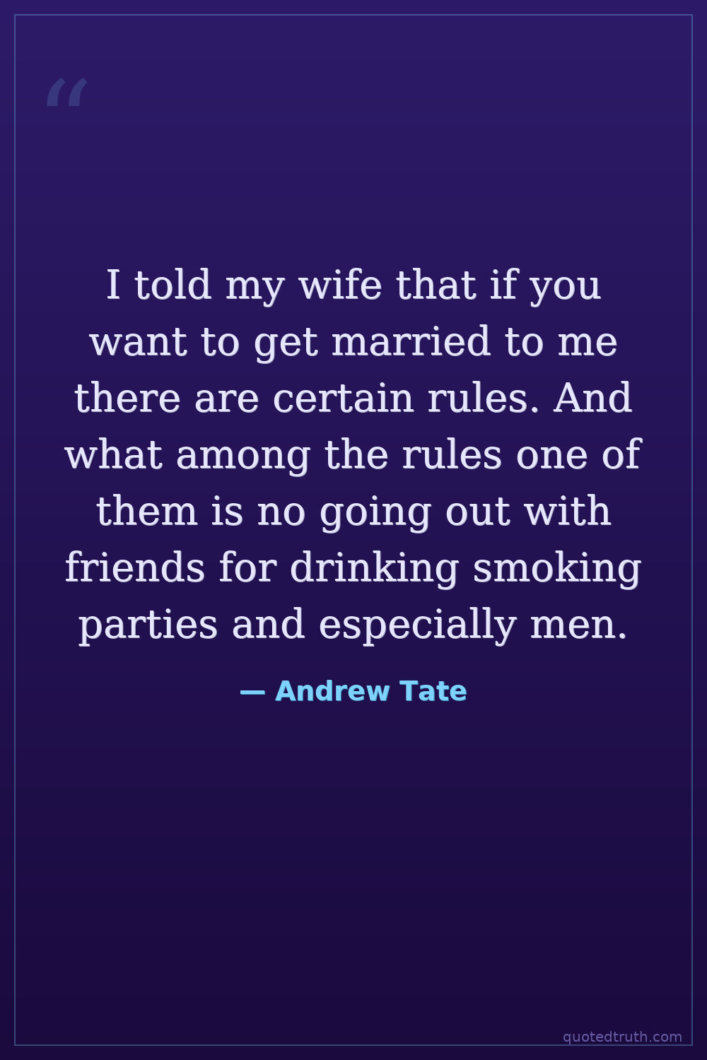I told my wife that if you want to get married to me there are certain rules. And what among the rules one of them is no going out with friends for drinking smoking parties and especially men.