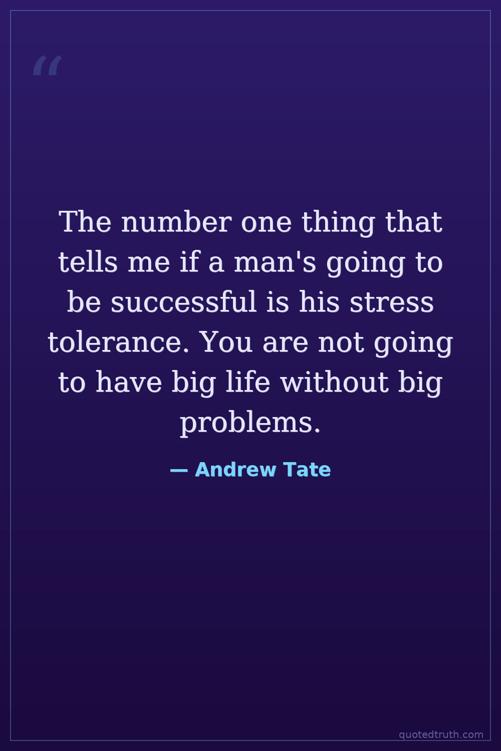 The number one thing that tells me if a man's going to be successful is his stress tolerance. You are not going to have big life without big problems.