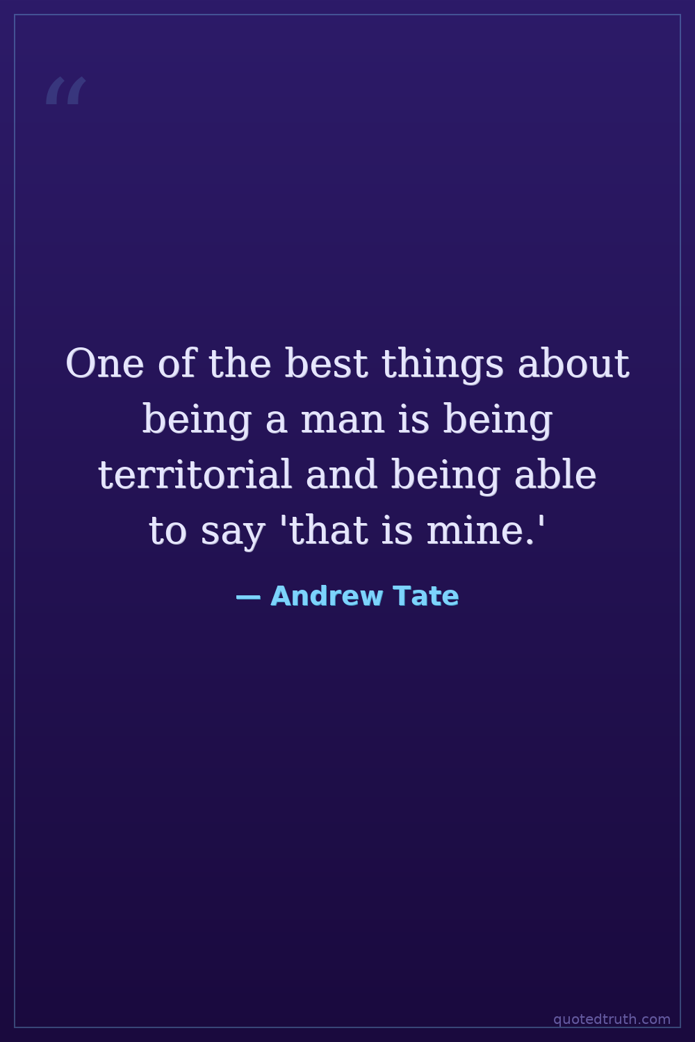 One of the best things about being a man is being territorial and being able to say 'that is mine.'