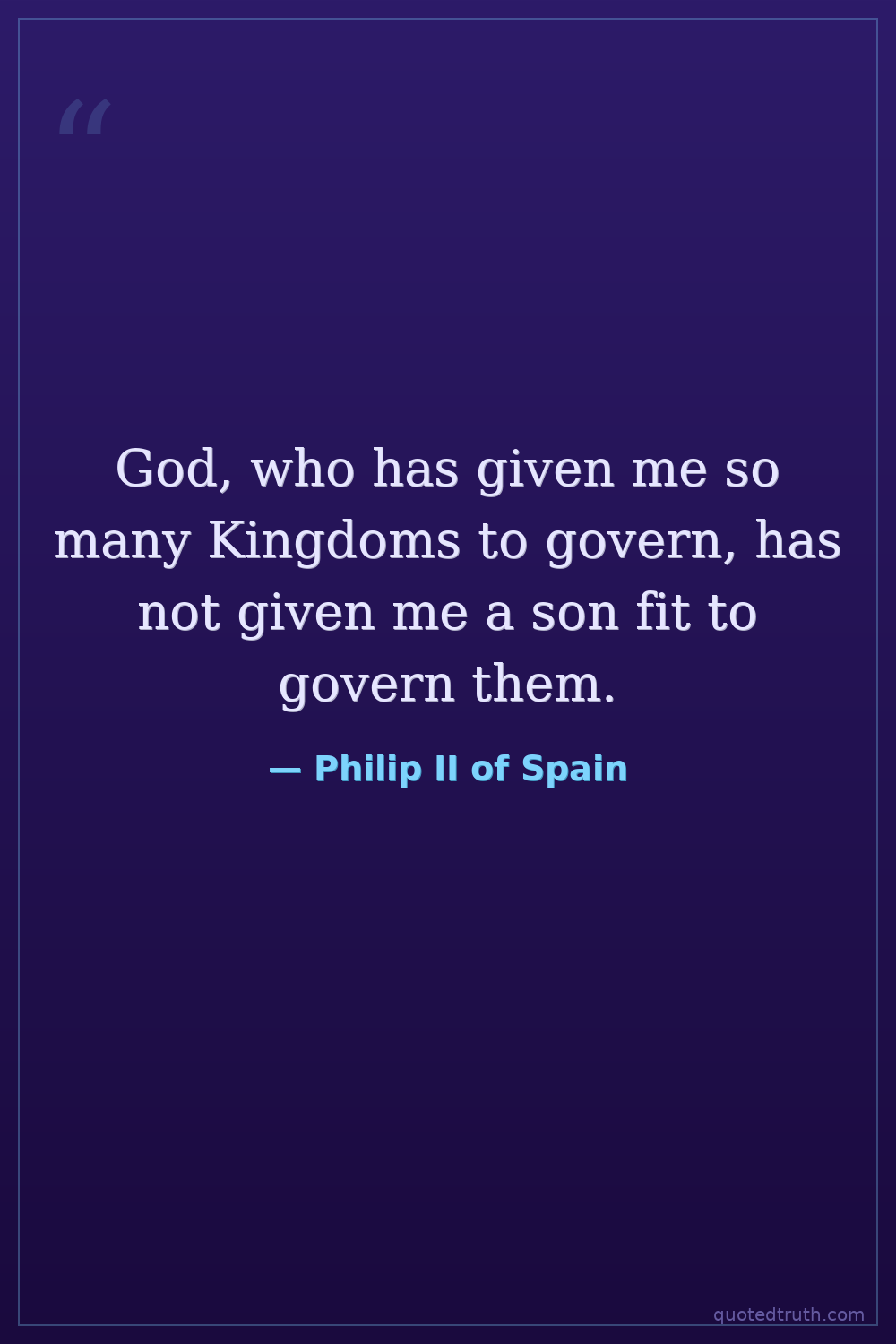 God, who has given me so many Kingdoms to govern, has not given me a son fit to govern them.