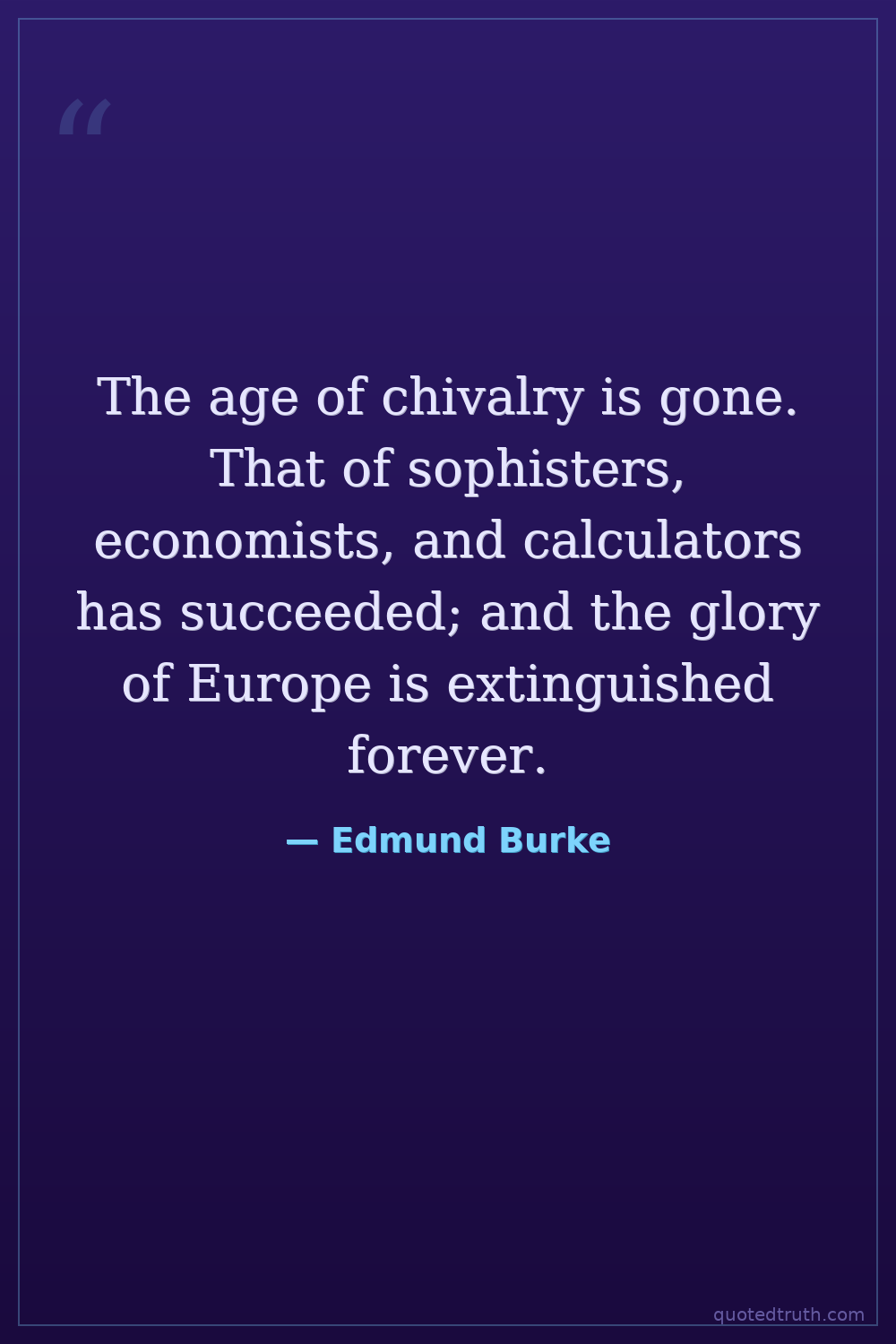 The age of chivalry is gone. That of sophisters, economists, and calculators has succeeded; and the glory of Europe is extinguished forever.