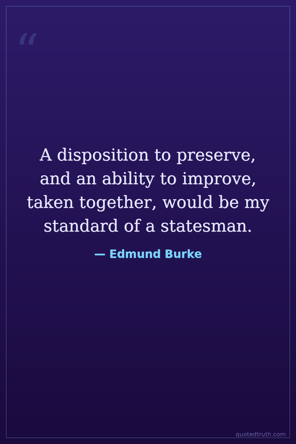A disposition to preserve, and an ability to improve, taken together, would be my standard of a statesman.