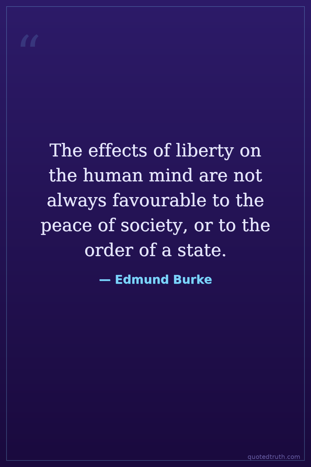 The effects of liberty on the human mind are not always favourable to the peace of society, or to the order of a state.