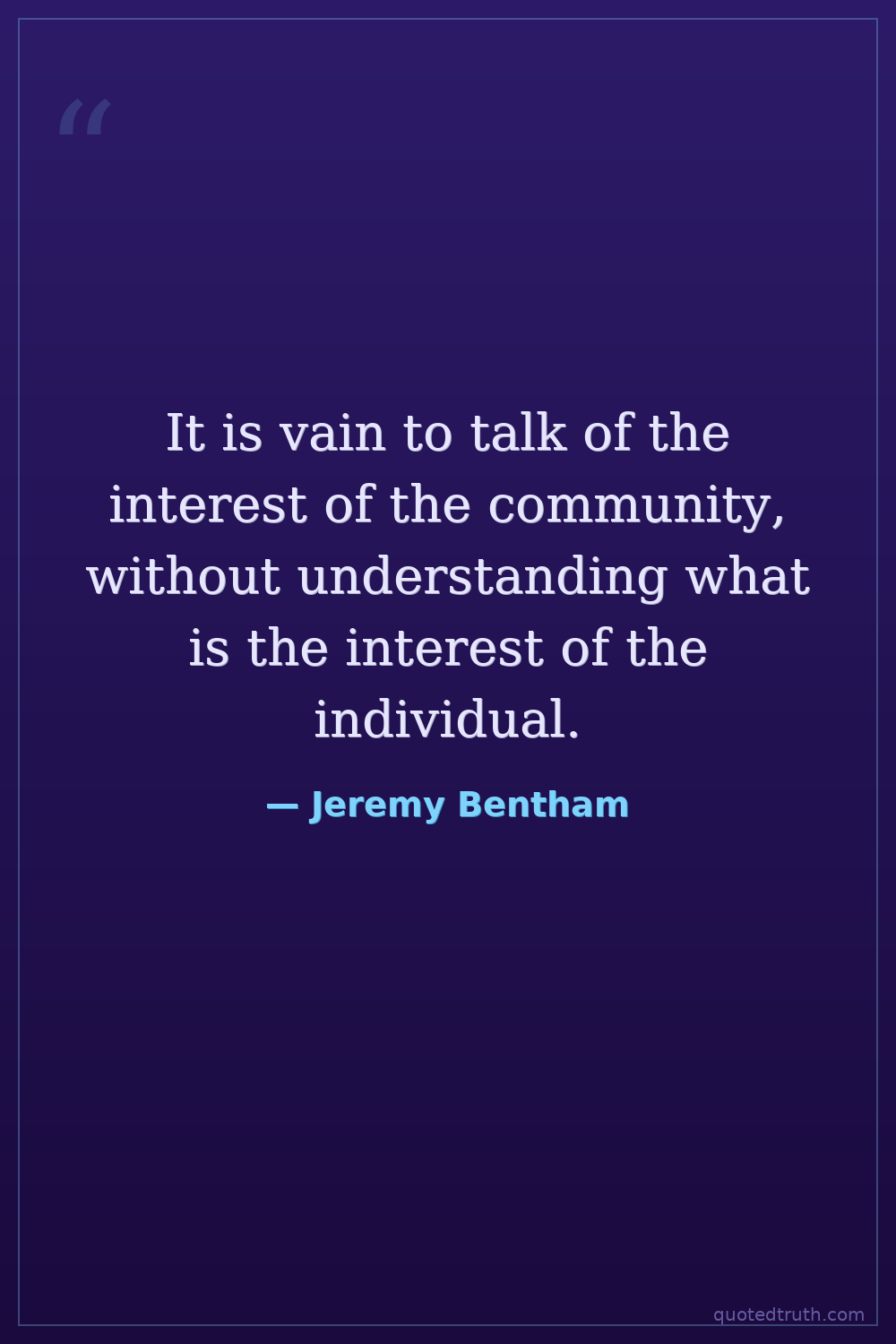 It is vain to talk of the interest of the community, without understanding what is the interest of the individual.