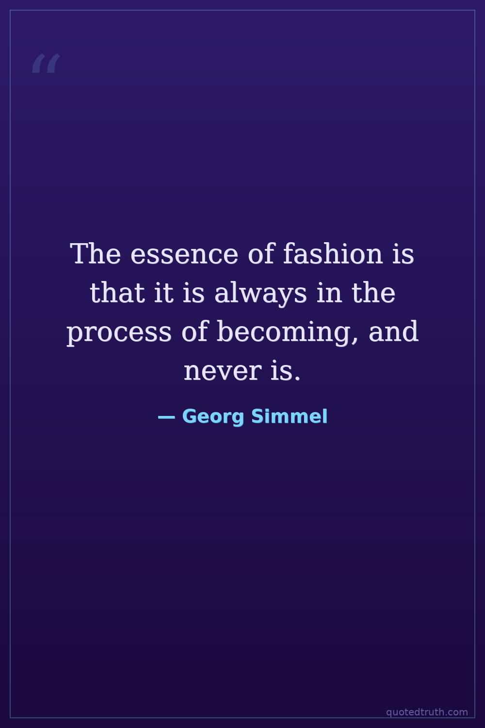 The essence of fashion is that it is always in the process of becoming, and never is.