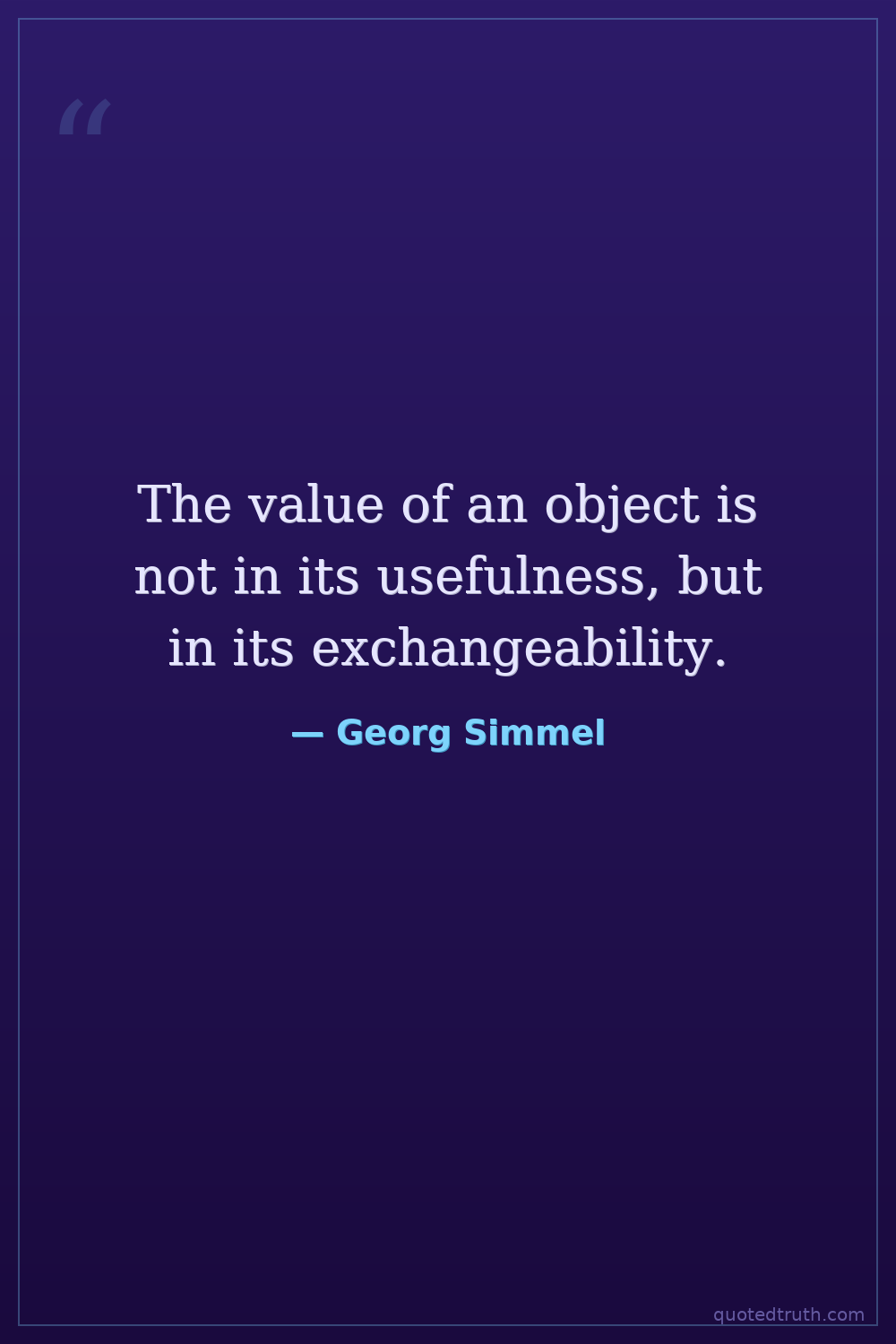 The value of an object is not in its usefulness, but in its exchangeability.