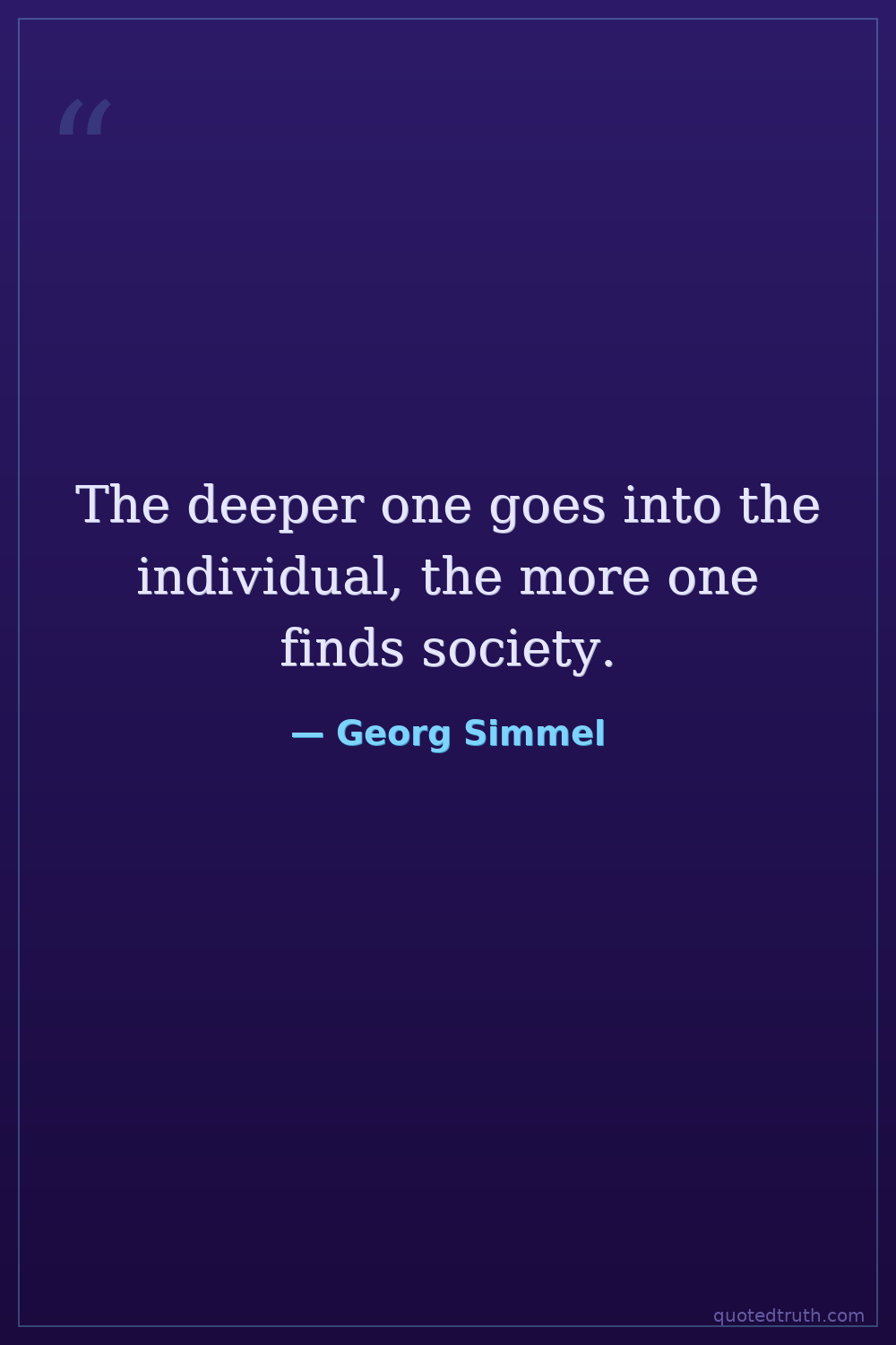 The deeper one goes into the individual, the more one finds society.