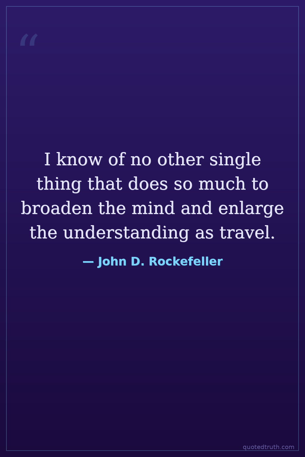 I know of no other single thing that does so much to broaden the mind and enlarge the understanding as travel.
