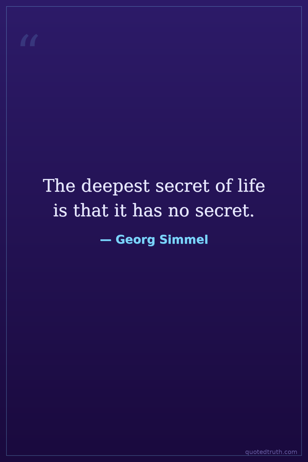 The deepest secret of life is that it has no secret.