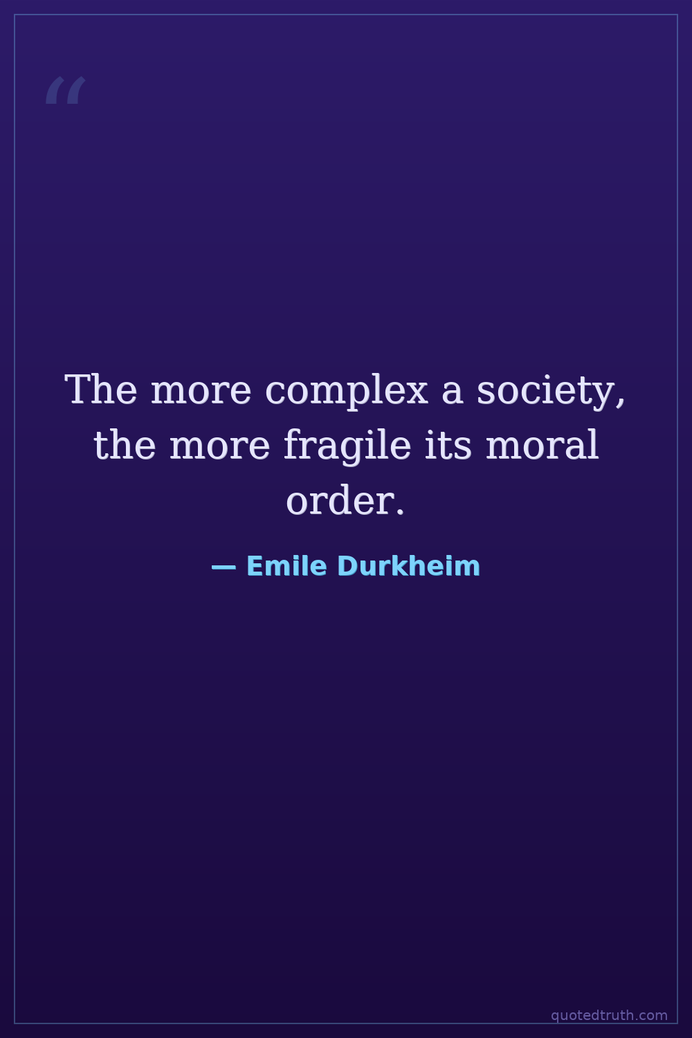 The more complex a society, the more fragile its moral order.