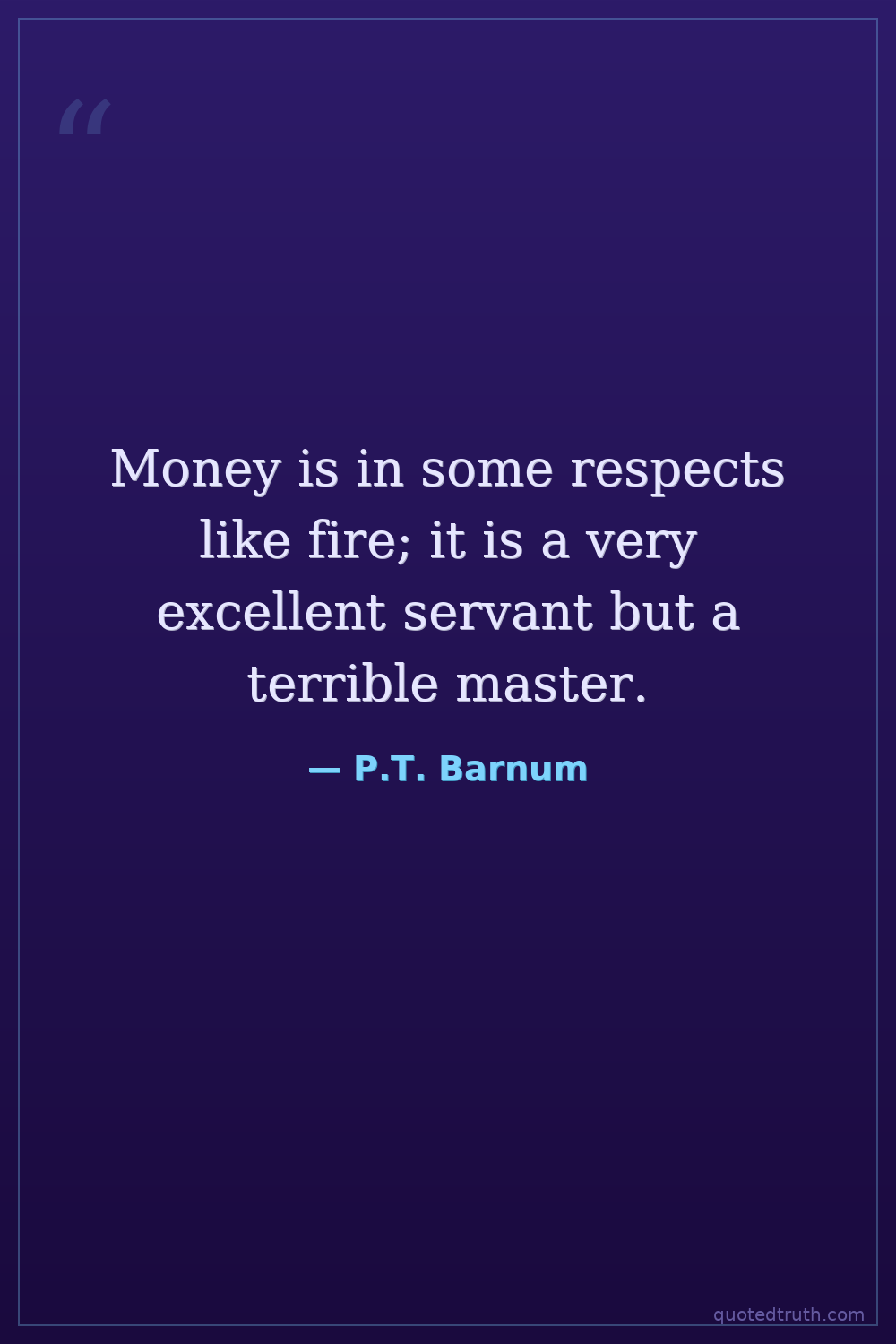 Money is in some respects like fire; it is a very excellent servant but a terrible master.