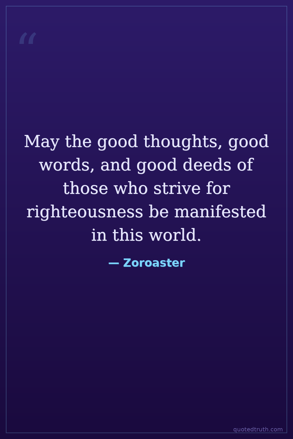 May the good thoughts, good words, and good deeds of those who strive for righteousness be manifested in this world.