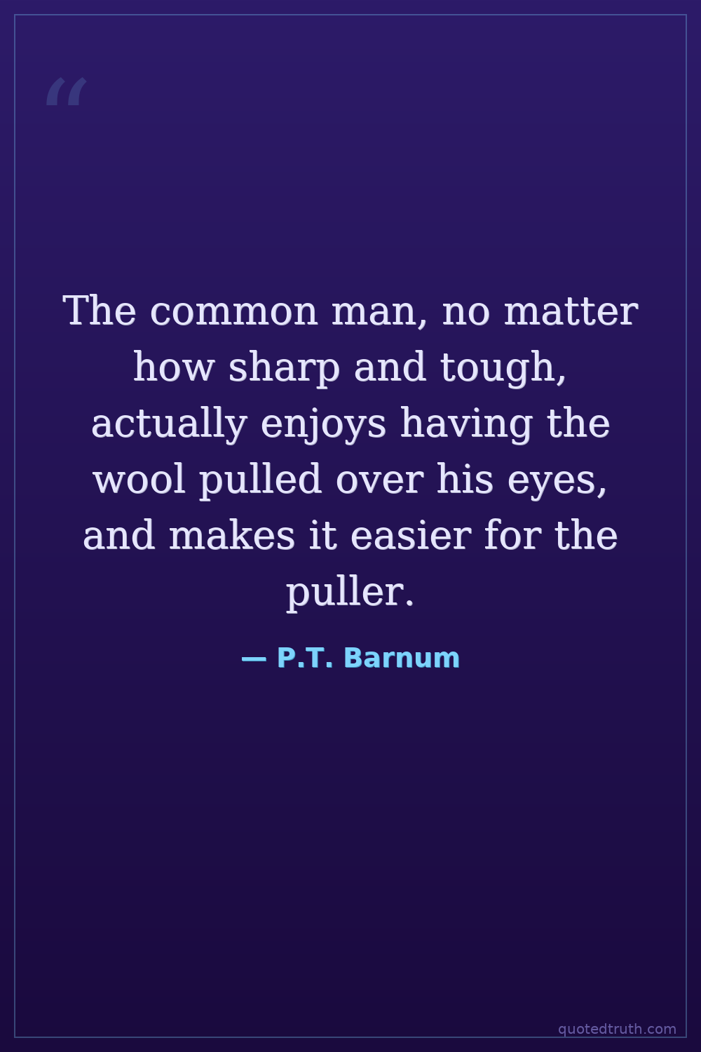 The common man, no matter how sharp and tough, actually enjoys having the wool pulled over his eyes, and makes it easier for the puller.
