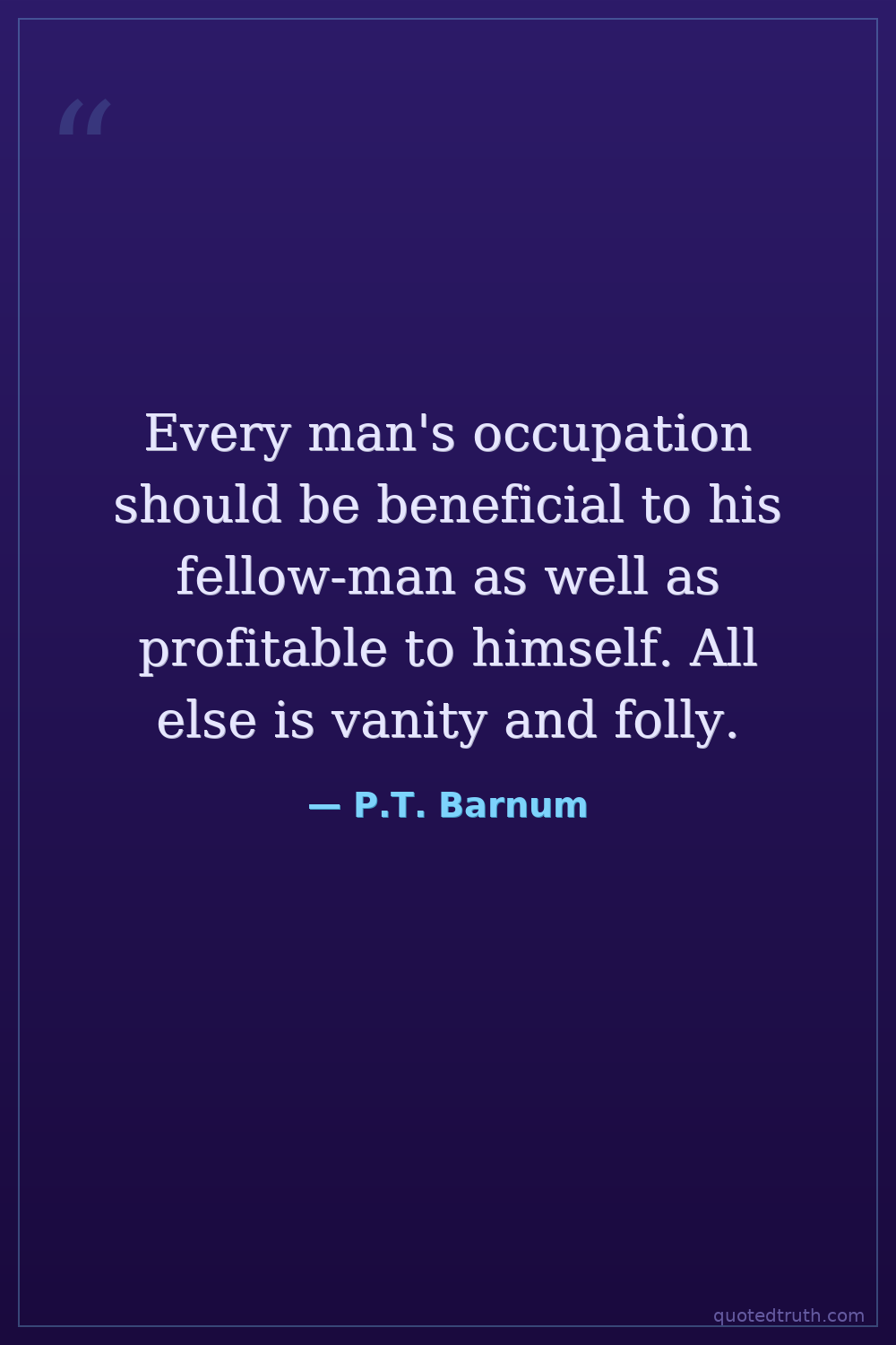 Every man's occupation should be beneficial to his fellow-man as well as profitable to himself. All else is vanity and folly.