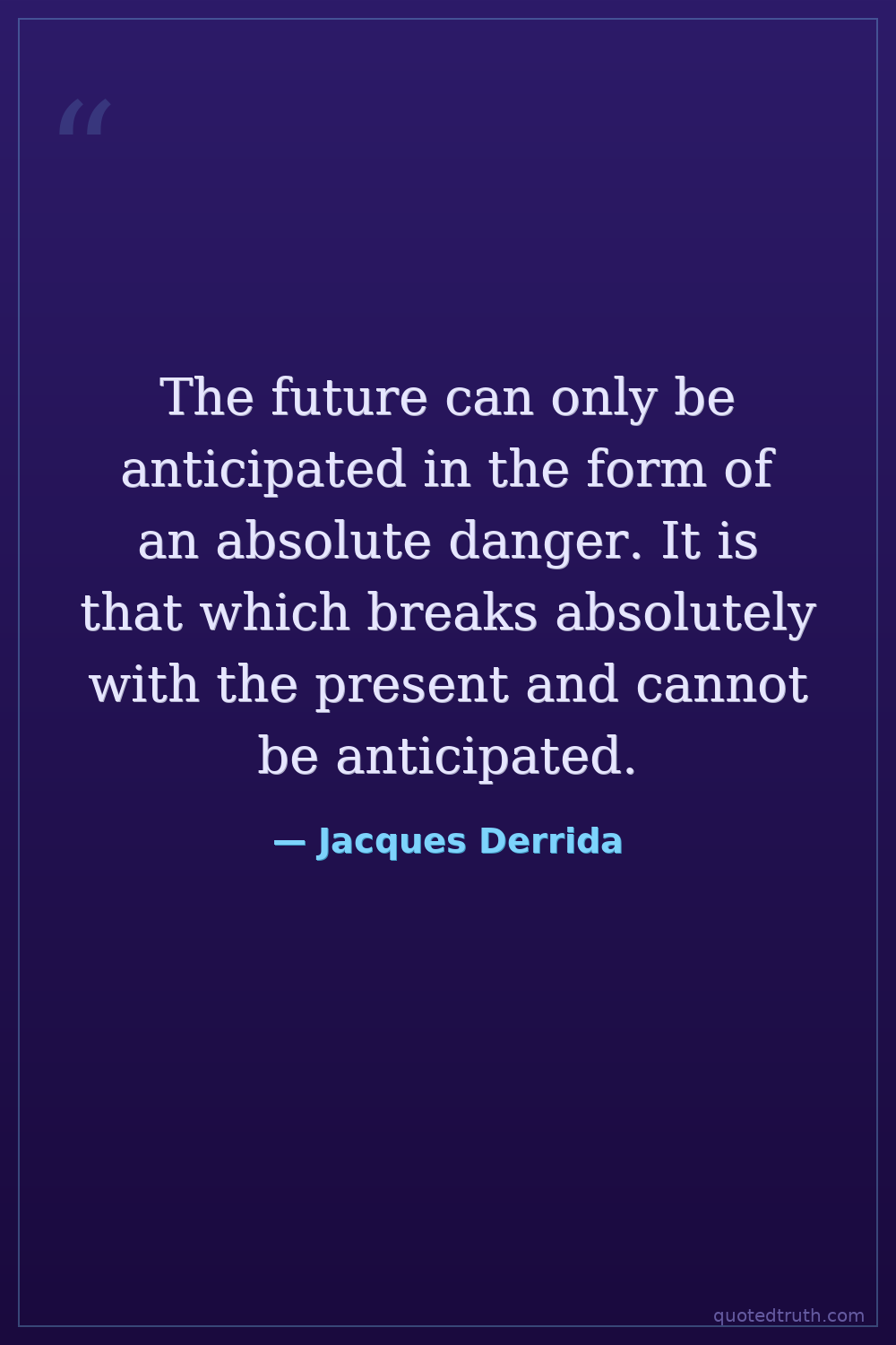 The future can only be anticipated in the form of an absolute danger. It is that which breaks absolutely with the present and cannot be anticipated.
