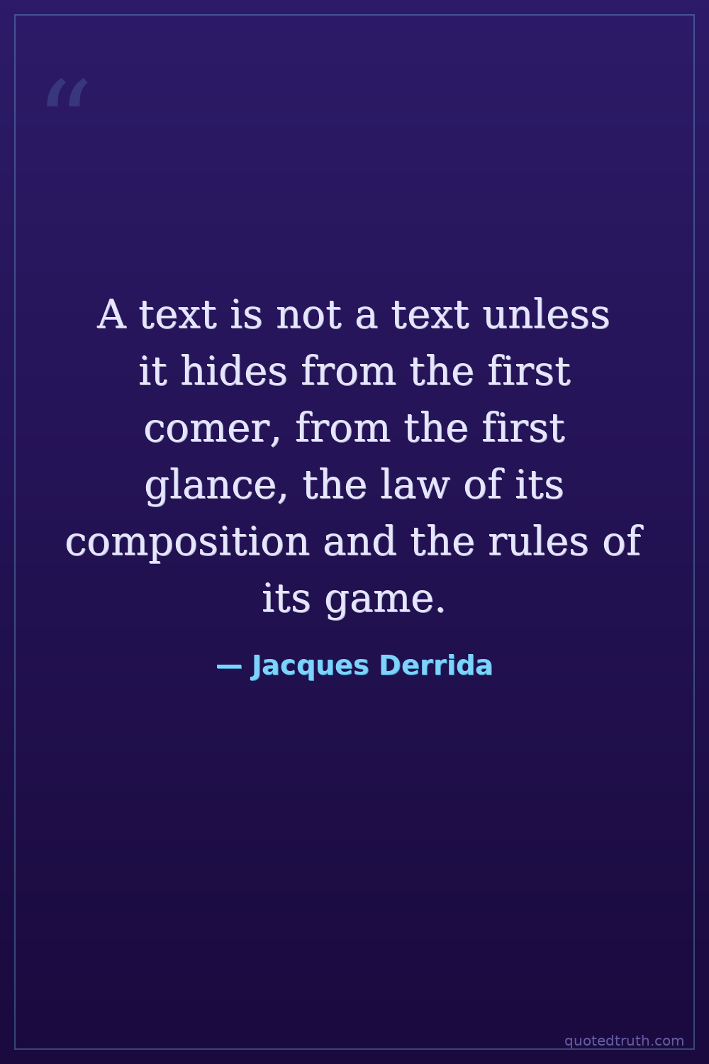 A text is not a text unless it hides from the first comer, from the first glance, the law of its composition and the rules of its game.