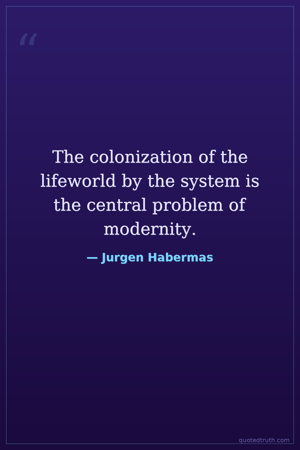 The colonization of the lifeworld by the system is the central problem of modernity.