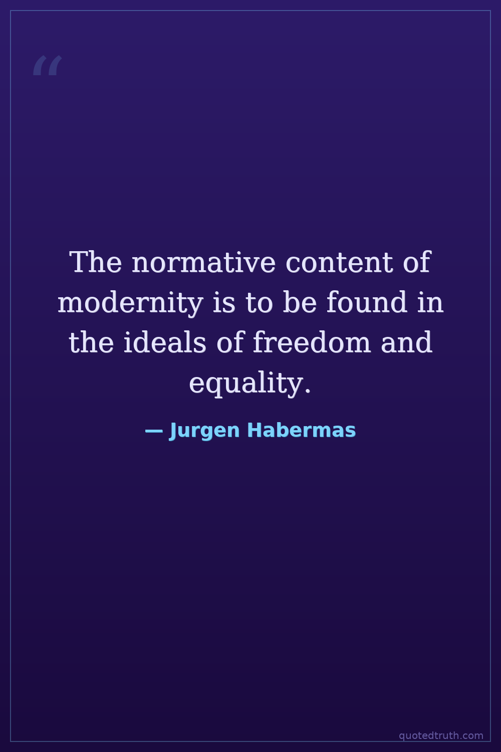 The normative content of modernity is to be found in the ideals of freedom and equality.