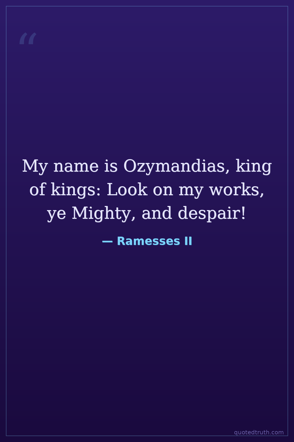 My name is Ozymandias, king of kings: Look on my works, ye Mighty, and despair!