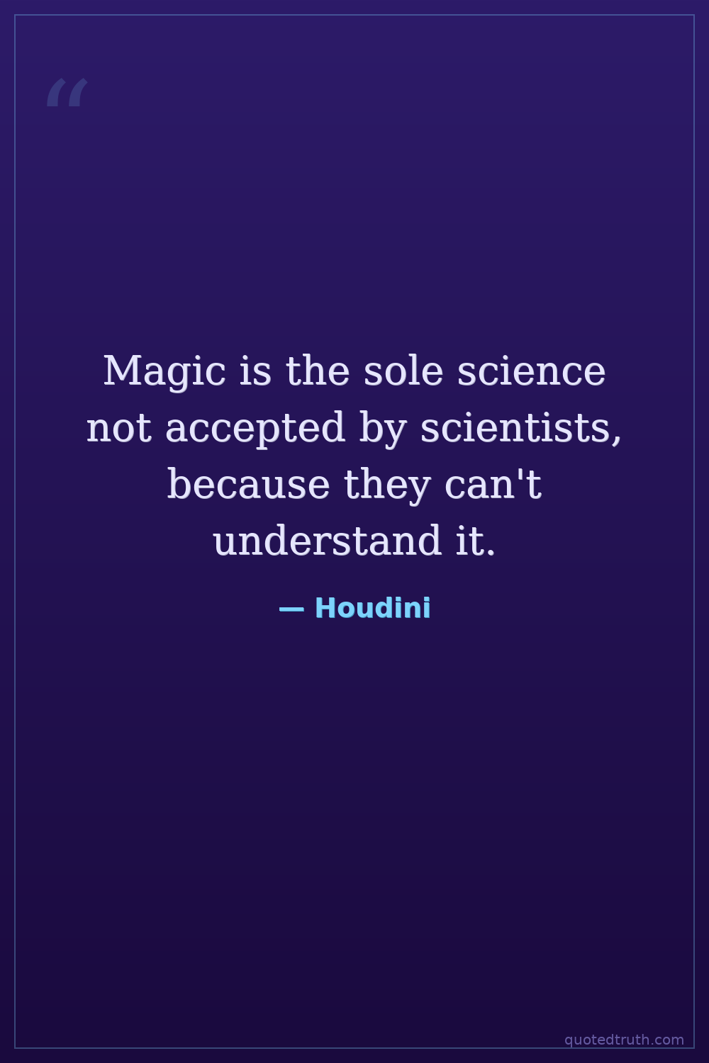 Magic is the sole science not accepted by scientists, because they can't understand it.