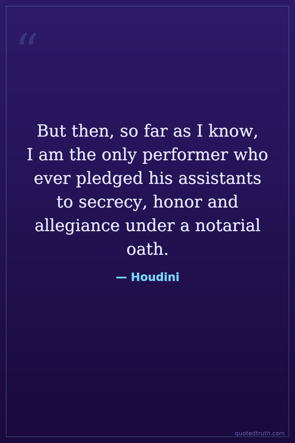 But then, so far as I know, I am the only performer who ever pledged his assistants to secrecy, honor and allegiance under a notarial oath.