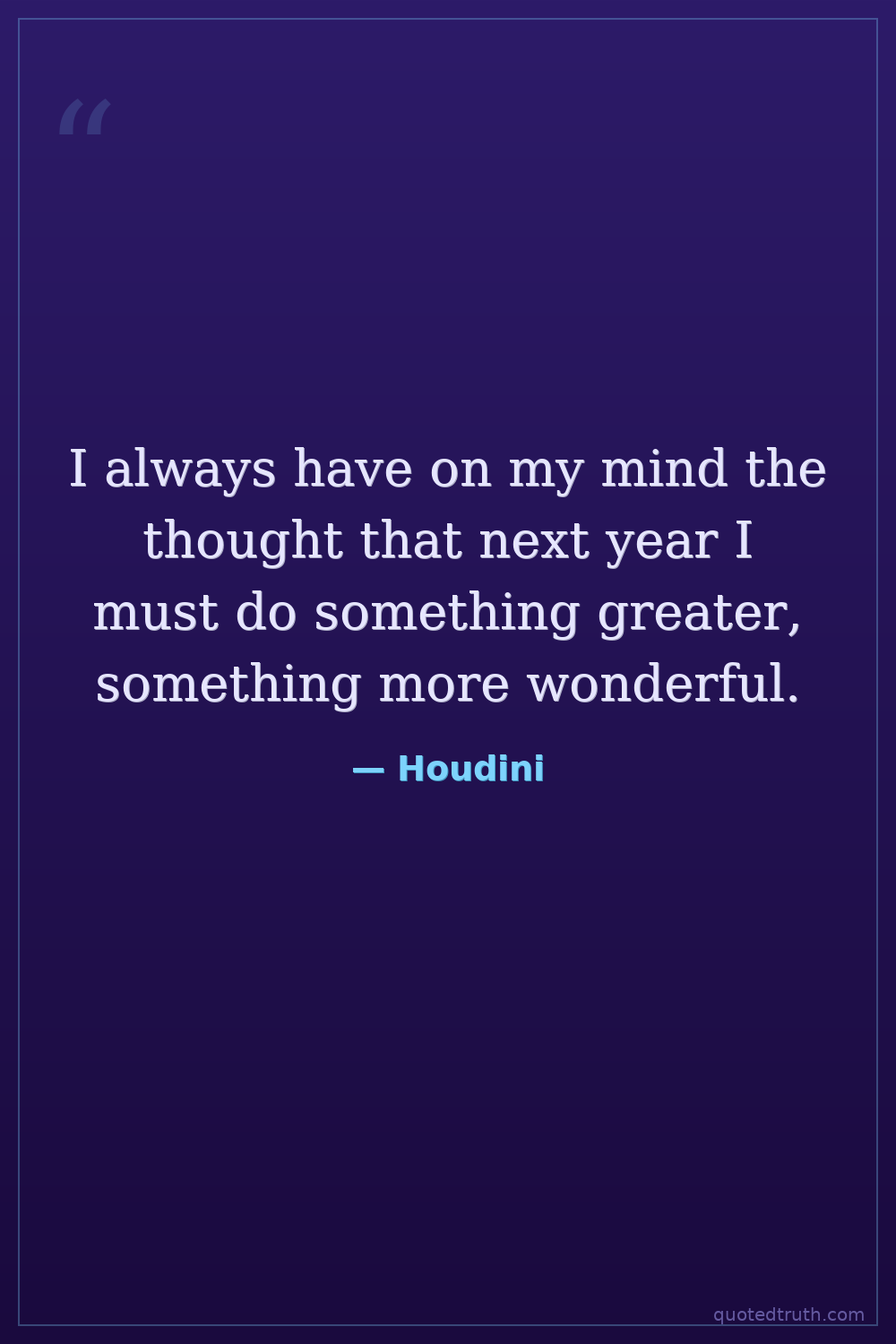 I always have on my mind the thought that next year I must do something greater, something more wonderful.