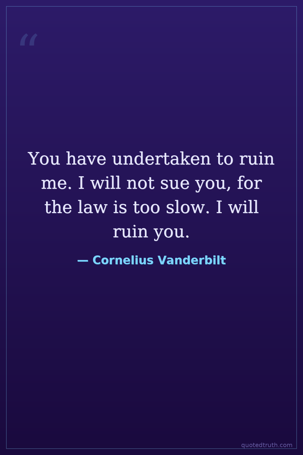 You have undertaken to ruin me. I will not sue you, for the law is too slow. I will ruin you.