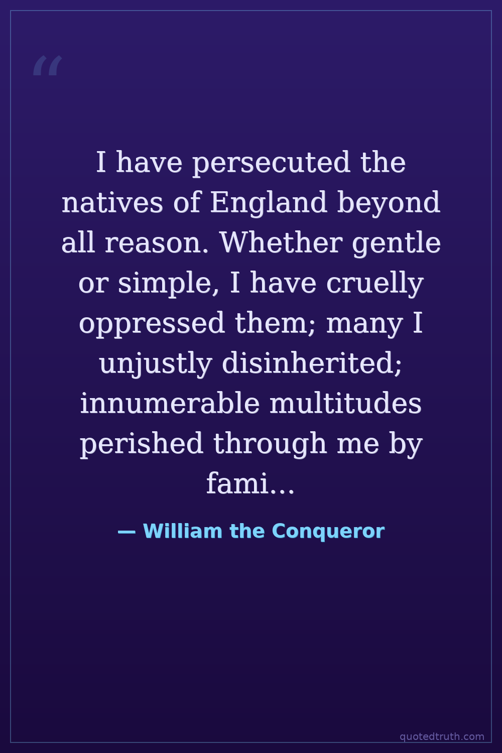 I have persecuted the natives of England beyond all reason. Whether gentle or simple, I have cruelly oppressed them; many I unjustly disinherited; innumerable multitudes perished through me by famine or the sword.
