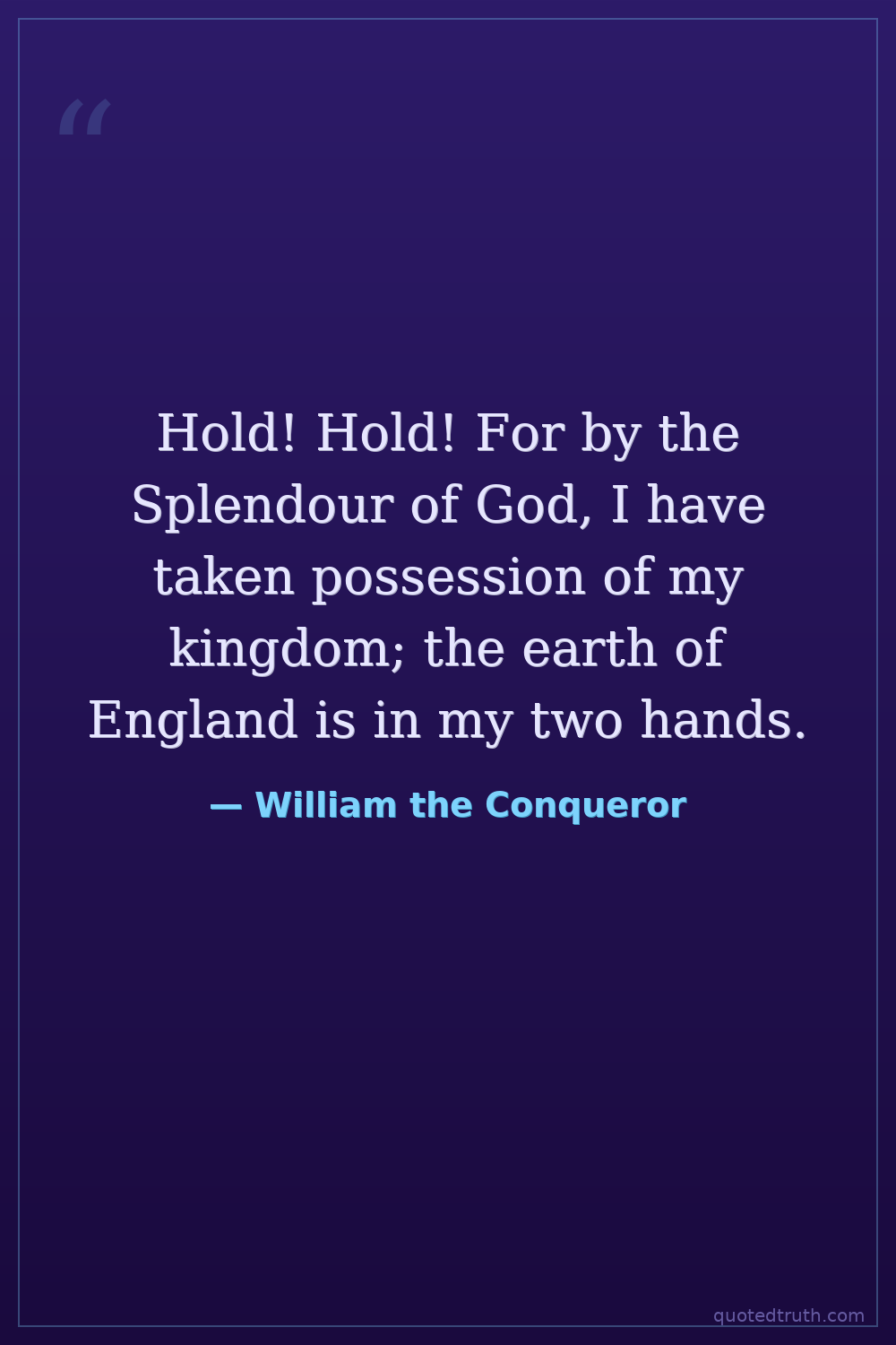 Hold! Hold! For by the Splendour of God, I have taken possession of my kingdom; the earth of England is in my two hands.