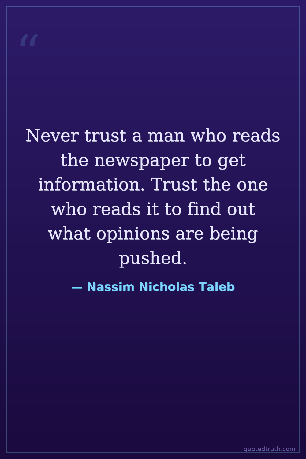 Never trust a man who reads the newspaper to get information. Trust the one who reads it to find out what opinions are being pushed.