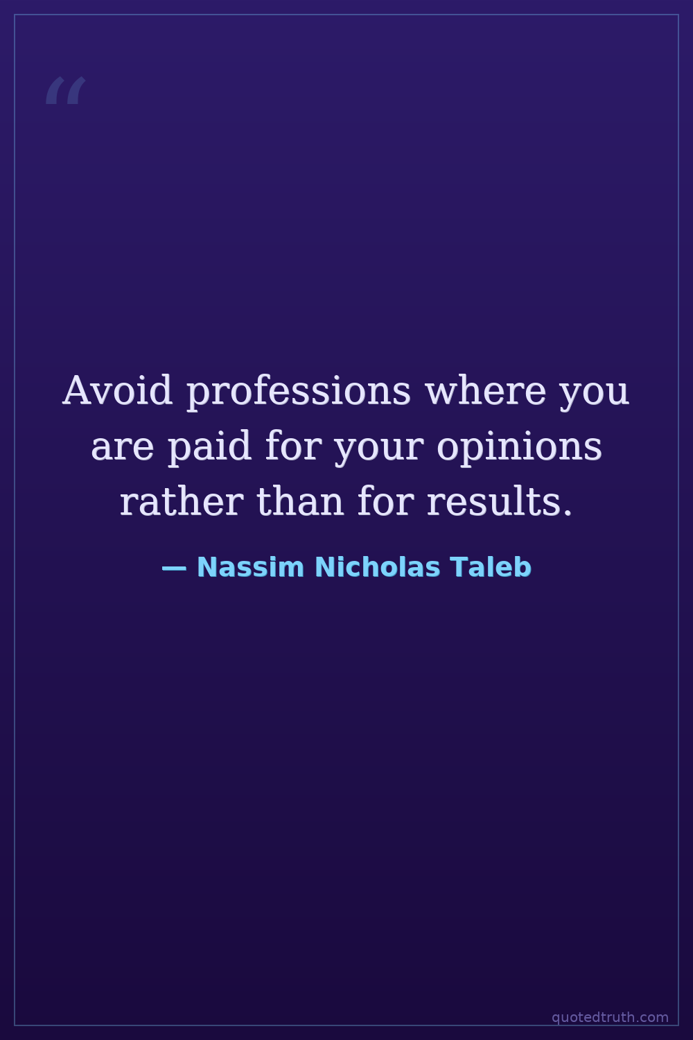 Avoid professions where you are paid for your opinions rather than for results.
