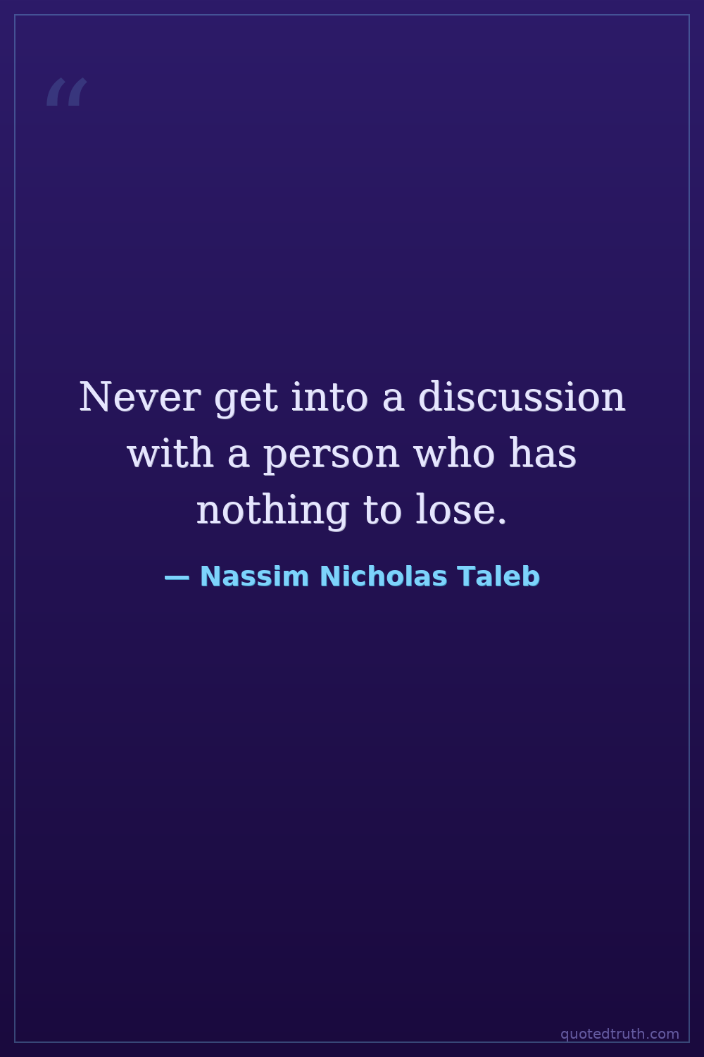 Never get into a discussion with a person who has nothing to lose.